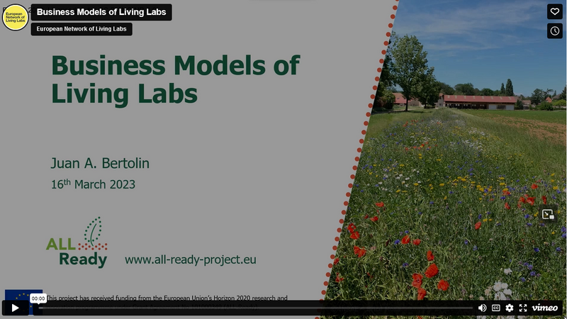 The training - Module 1 "Understanding Living Lab Concepts and Co-creation" - was organized on 16th March 2023 online by the European Network of Living Labs (ENoLL) as part of the ALL-Ready project. The training targeted the members of the ALL-Ready Pilot Network and provided them with an overview of Living Lab Basics, Governance Models, and the Business Models of Living Labs. The trainers shared with participants insights into the principles, methodologies, and tools that can be used to effectively enact Living Labs' open innovation in agroecology.
